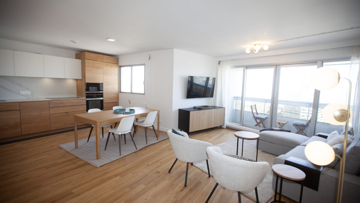 Cette société spécialisée dans la location de biens immobiliers a fait appel à nous pour rénover cet appartement aux vues imprenables situé au dernier étage de cette tour bien connue du Quai Citroën.